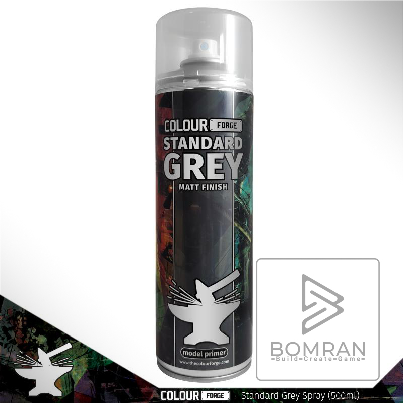 Prime your miniatures to perfection with Colour Forge Standard Grey spray paint. This versatile matte finish paint is essential for creating a robust foundational layer that equally supports dark and light colours. Ideal for a wide range of projects, discover its key features: