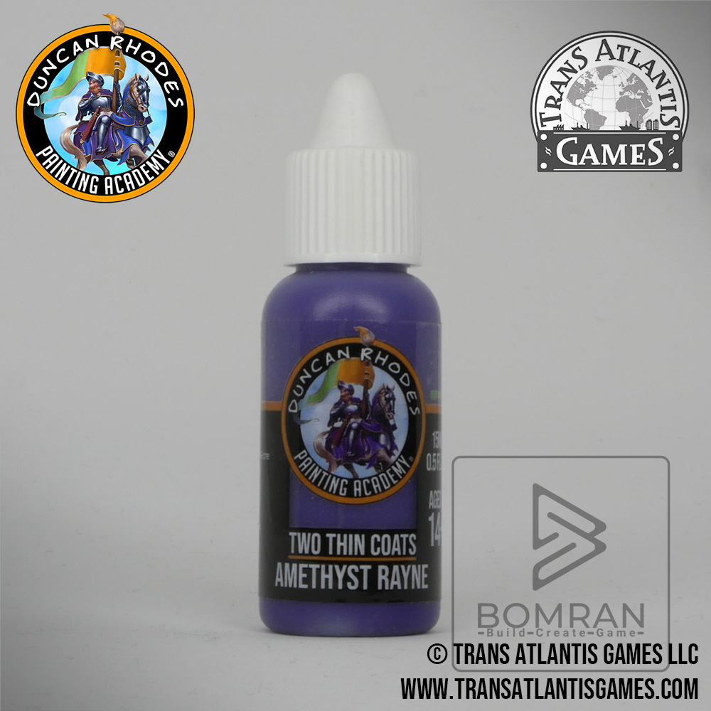 Amethyst Raybe is a luxurious and regal painting akin to the royal Xereus Purple by Citadel and the exotic Alien Purple by Army Painter. This rich, deep purple is perfect for adding a touch of elegance and mystery to your miniatures. Its excellent opacity allows for full, even coverage, while its blend-ability makes it suitable for creating a range of purple tones. Whether used for majestic cloaks, magical effects, or regal decorations, Amethyst Raybe adds a royal flair to any painting project.