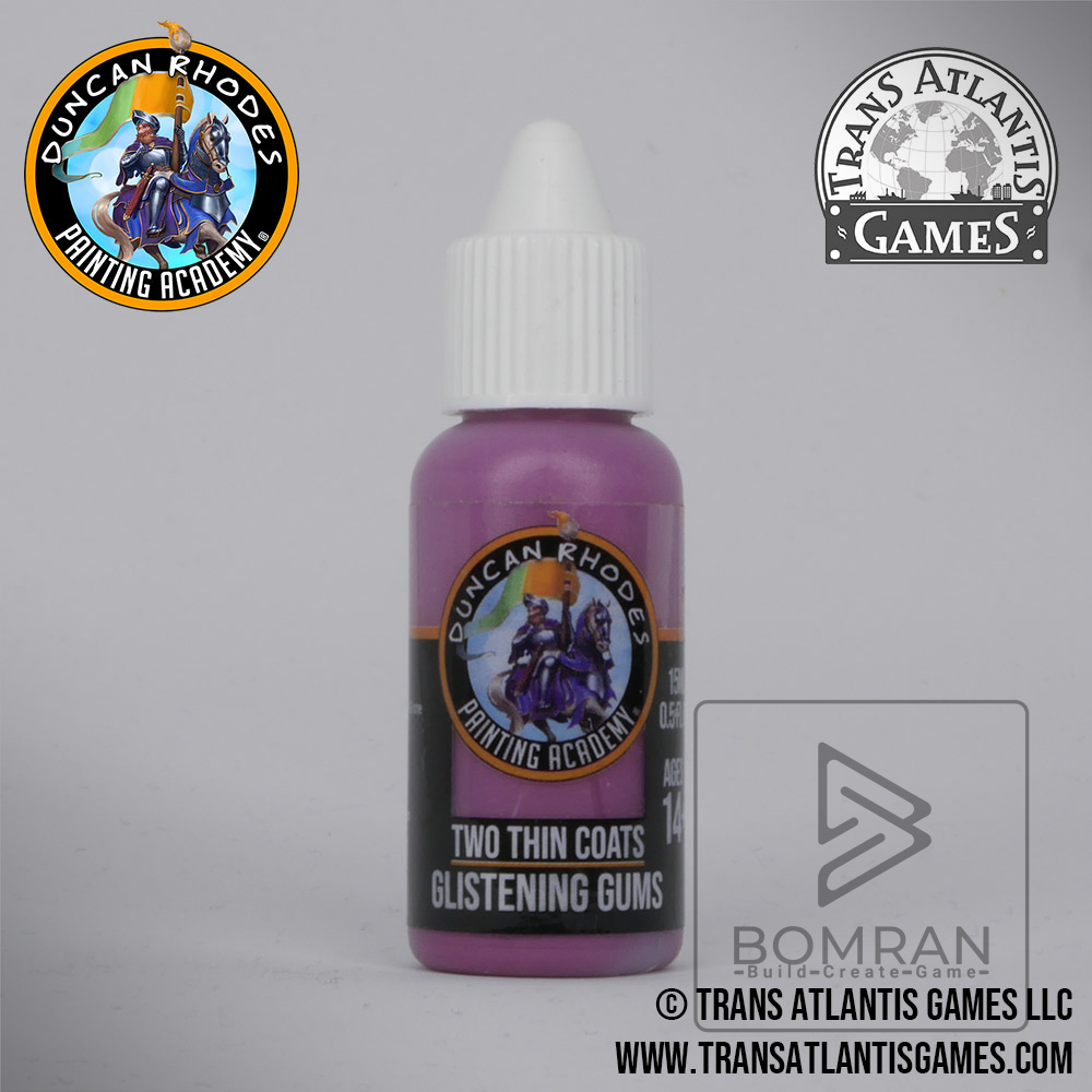 Glistening Gums, comparable to Citadel’s Pink Horror and Army Painter’s Wasteland Soil, is a bright, vivid pink. Perfect for adding a pop of colour to creatures, magical effects, or playful details, this paint stands out with its vibrant hue. Its high-quality formula ensures a smooth, even application, making it ideal for both base coating and detailed work. Glistening Gums is an excellent choice for adding a playful and whimsical touch to your painting projects.