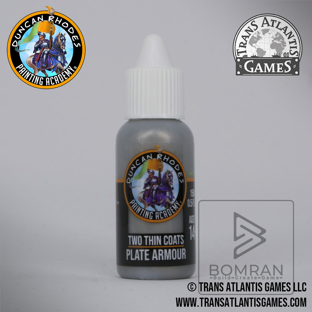 Plate Armour, mirroring the reflective qualities of Citadel’s Ironbreaker and Army Painter’s Plate Mail Metal, is a bright, metallic silver. This paint is excellent for highlighting metal details, creating the look of polished armour, or adding a shimmering touch to sci-fi models. Its high opacity and reflective finish make it ideal for achieving a gleaming metallic effect. Plate Armour is essential for adding a striking and luxurious metallic finish to your miniatures.