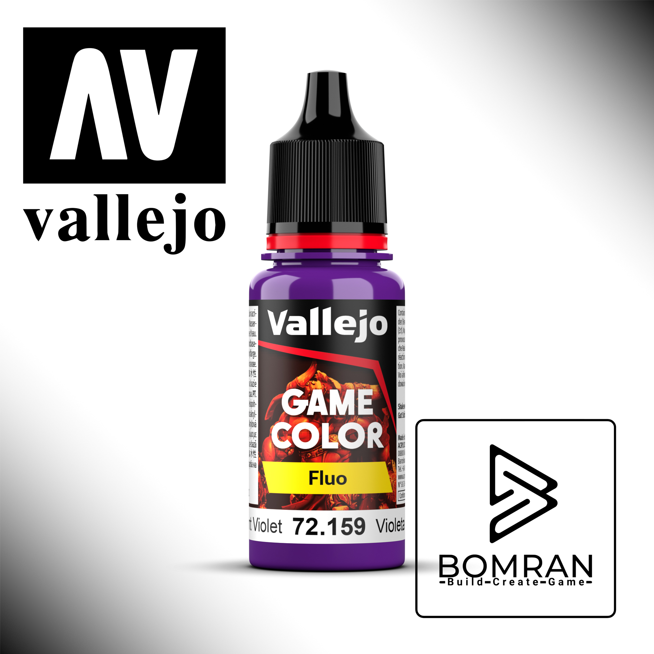 Packaged in an 18 ml/0.6 fl oz bottle with an eyedropper, this paint is designed to prevent evaporation, ensuring it remains usable for an extended period. Infuse vibrant elegance into your miniatures with Vallejo Game Colour Fluorescent Violet 72.159.