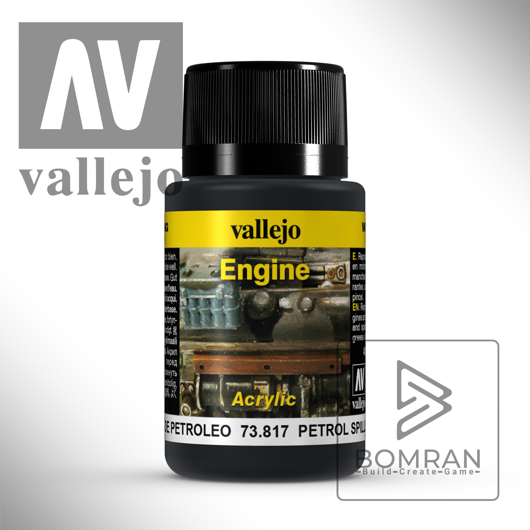 Cleaning up is effortless, as tools can be easily cleaned with water and soap, embodying Vallejo’s commitment to your convenience and the environment. True to the Vallejo Weathering Effects ethos, Petrol Spills product is non-flammable and free from solvents, prioritizing your safety and preserving our planet.