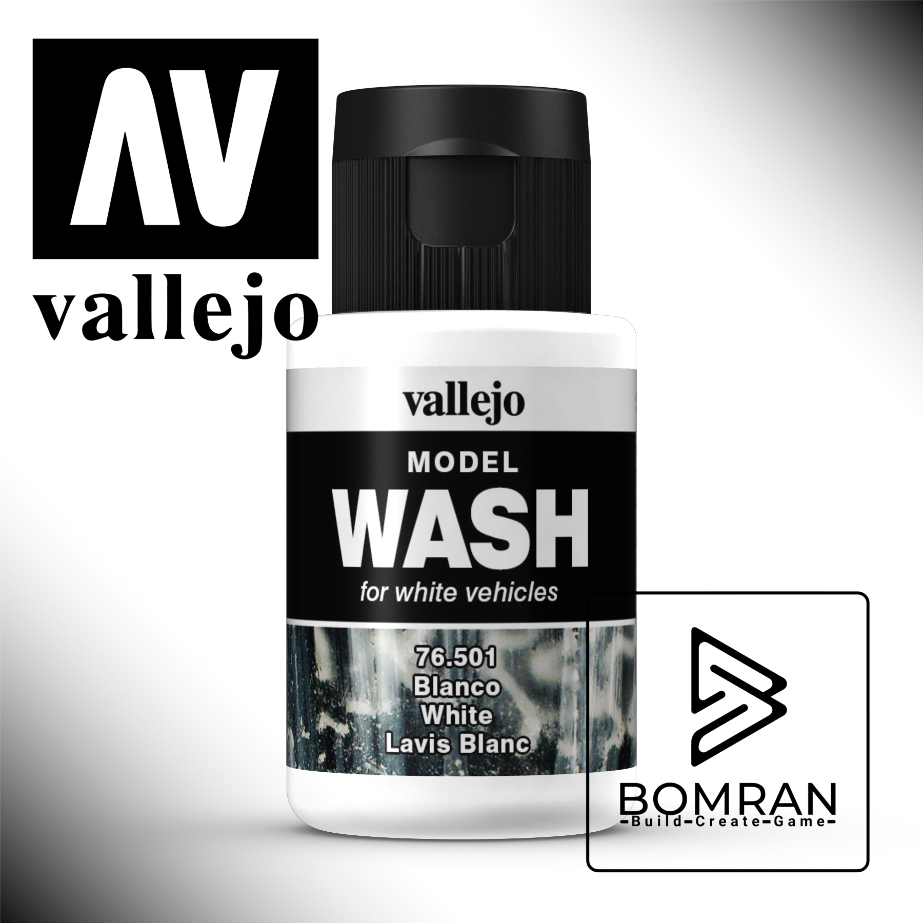 Vallejo Model Wash – White is conveniently packaged in 35 ml (1.18 fl.oz.) bottles, featuring a practical flip top/eyedropper closure for precise and controlled dispensing.